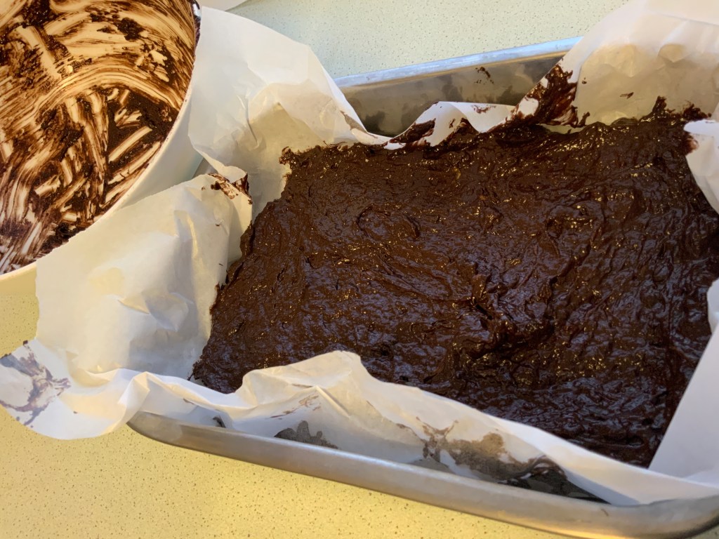 Pour the mixture into an 8 x 10 tray lined with unbleached baking paper (not the non-stick silicone impregnated stuff)