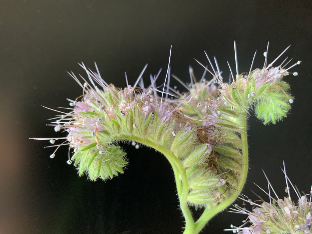 A native of South West USA and Northern Mexico, the Latin name is Phacelia Tanacetifolia. Its name is a bit of a mouthful but grown on Hampshire (UK) farms in 2023, these curious blooms were not intended for food but were part of a pretty, insect friendly, mixed seed cover crop. A cover crop is an annual crop planted by farmers to help to add Nitrogen to the soil and in turn fertilise crops. The flowers of these cover crop plants also attract pollinating insects including but not limited to Bees.